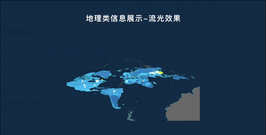 根據(jù)定義好的設計風格與選定的圖表類型進行合理的可視化設計。目前來說大屏可視化主要有指標類信息點和地理類信息點兩大可視化數(shù)據(jù)。指標類信息點可視化效果相對簡單易實現(xiàn),而地理類信息點一般可視化效果酷炫,但是開發(fā)相對困難,需要設計師跟開發(fā)多溝通。地理類信息一般具有很強的空間感、豐富的粒子、流光等動效、高精度的模型和材質(zhì)以及可交互實時演算等特點,所以對于被投電腦、大屏拼接器等硬件設備的性能會有要求,硬件配置不夠的情況下可能出現(xiàn)卡頓甚至崩潰的情況,所以這點也是需要提前溝通評估的。