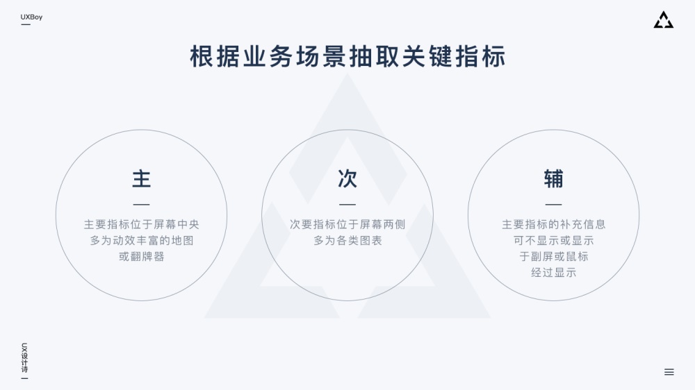 確定關鍵指標后,根據(jù)業(yè)務需求擬定各個指標展示的優(yōu)先級(主、次、輔)。