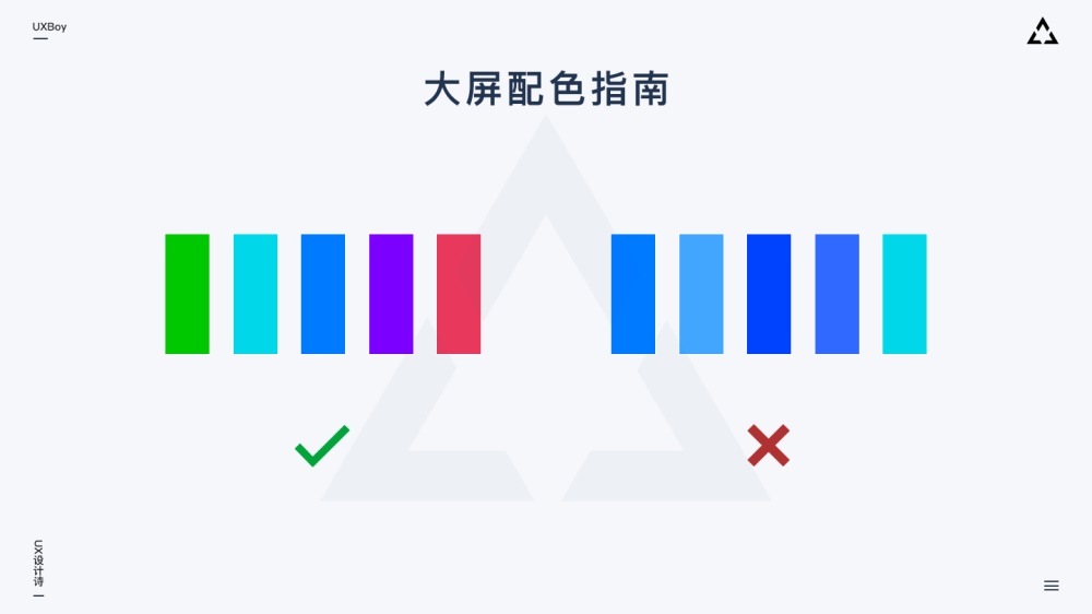 大屏的分辨率、比例、使用環(huán)境、投射方式等均會對設計造成影響。理想情況下,我們應該在設計開始前,就能打開大屏系統(tǒng)做一些簡單測試。我們可以從網(wǎng)上收集不同設計師不同風格的大屏設計作品,然后投上去查看實際效果。因為大多數(shù)時候大屏都會存在色彩偏差,這時通過測試我們就能發(fā)現(xiàn)漸變色、鄰近色等不同類型的色彩搭配是否可以在目標大屏上良好呈現(xiàn),如果不可以,那我們設計進行時就不要使用顯示效果不佳的色彩搭配。另一方面,樣圖溝通環(huán)節(jié)及時測試也很重要。