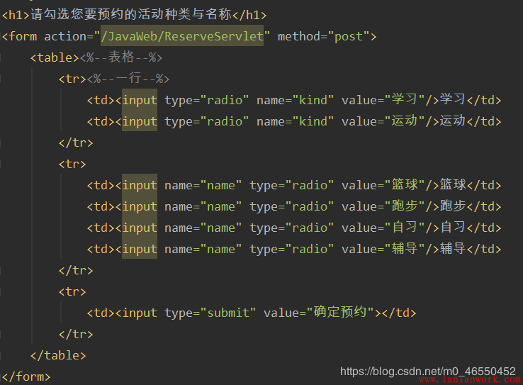 預(yù)約功能的實現(xiàn)更是與注冊功能的實現(xiàn)基本一致。所不同的應(yīng)該是jsp頁面對單選框輸入的設(shè)置。