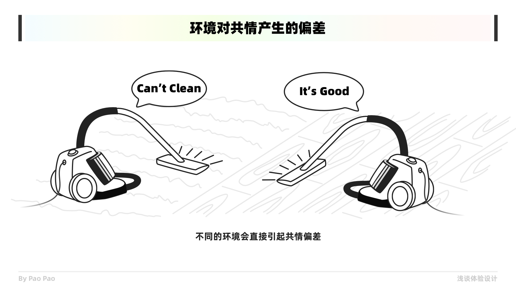 在體驗設計的過程中,我們需要與目標對象構(gòu)建共情時,一定是有目的有意圖的。以使用性測試為例,往往我們都會設定一些產(chǎn)品測試任務和目標給用戶,再進行觀察和共情。這也將允許我們能夠在同一個或相似的場景事件中發(fā)生共情,這樣才能夠獲取到更真實有效的共情。以一個吸塵器產(chǎn)品為例,如果對方是在地毯上測試的,而你是在木質(zhì)地板的環(huán)境下去共情的,那么共情結(jié)果肯定是有所出入的。所以構(gòu)建一個共情目的甚至是環(huán)境是有效共情的一個重點之一。