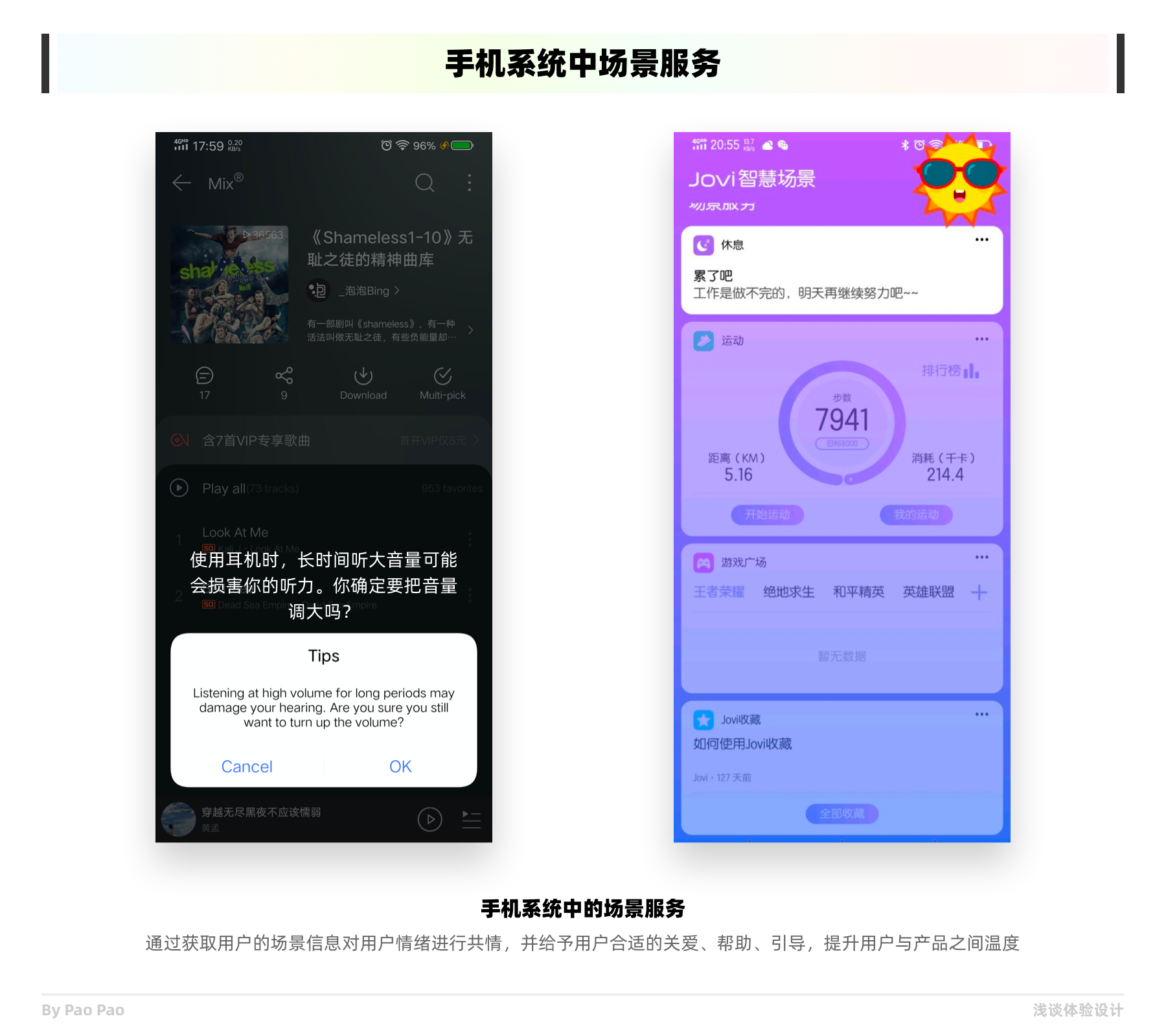 三、情感關(guān)注型:有一些屬于情感關(guān)注類型的共情設計,通過獲取用戶的場景信息或其他數(shù)據(jù)共情用戶情緒,并給予用戶合適的關(guān)愛、幫助、引導。為用戶帶來軟件有情感,品牌有溫度的體驗;