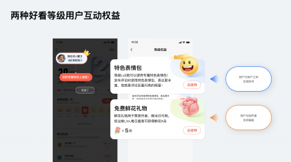 因此在精神激勵的虛擬權(quán)益上,好看平臺希望能夠打造一款有記憶點的互動方式,一方面;用戶之間的主要互動場景是評論區(qū),因此權(quán)益之一是打造符合好看人群特征的互動表情,創(chuàng)造平臺特有的互動語言來加強用戶交流;另一方面好看的內(nèi)容創(chuàng)作者一般為多平臺創(chuàng)作者,需要讓創(chuàng)作者在好看平臺上感受到用戶差異,激發(fā)創(chuàng)作動力,因此也塑造了用戶等級下的另一個權(quán)益“鮮花禮物”。作者使用被打賞的鮮花可以進(jìn)行流量曝光的兌換,形成了一個用戶側(cè)互動激勵與創(chuàng)作者側(cè)的良性互動。