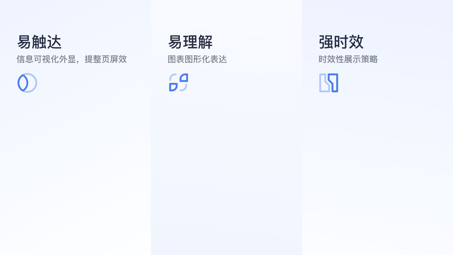 易理解:通過數(shù)據(jù)結(jié)構(gòu)化、圖形可視化、標(biāo)簽化字體等用戶更易理解的設(shè)計(jì)表達(dá)語言,幫助用戶更簡(jiǎn)單快捷的獲取信息。