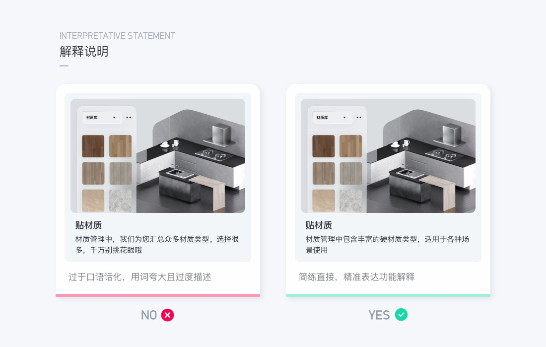 在界面交互中,文案作為信息傳遞的載體,占據(jù)的比重是最大的,在群核的產(chǎn)品中,我們規(guī)范了文案的表達(dá)提升信息表達(dá)的精準(zhǔn)度,之前有針對(duì)工具文案做了梳理。