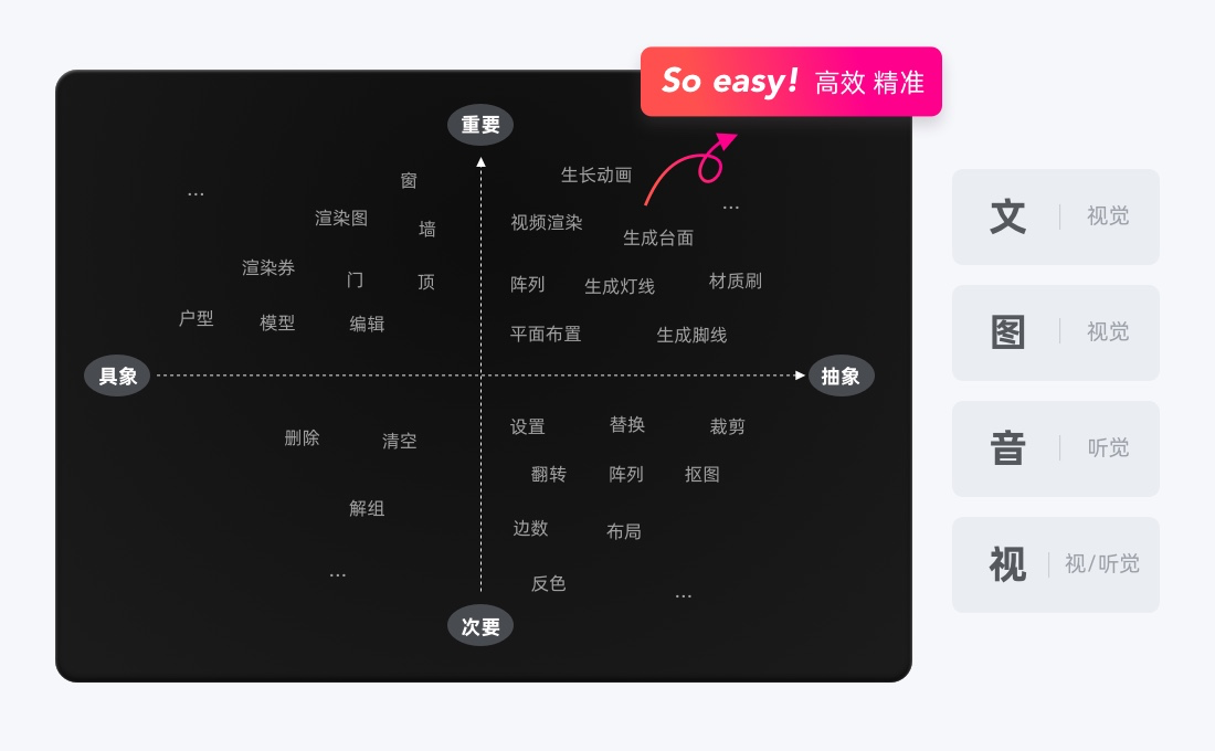 根據(jù)美國哈佛商學(xué)院有關(guān)研究人員的分析資料表明,人的大腦每天通過五種感官接受外部信息的比例分別為:視覺83%、聽覺11%、嗅覺3.5%、觸覺1.5%、味覺1%(數(shù)據(jù)暫不涉及短視頻直播領(lǐng)域)在群核體系下的產(chǎn)品,圖和文分別是有哪些?