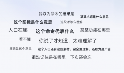 群核科技下產(chǎn)品正是這樣的特點(diǎn),以酷家樂云設(shè)計(jì)工具為例,系統(tǒng)交互結(jié)合各行業(yè)垂類場(chǎng)景,各種命令、操作、引導(dǎo)、畫面控制等信息的表達(dá)很容易讓用戶疑惑。