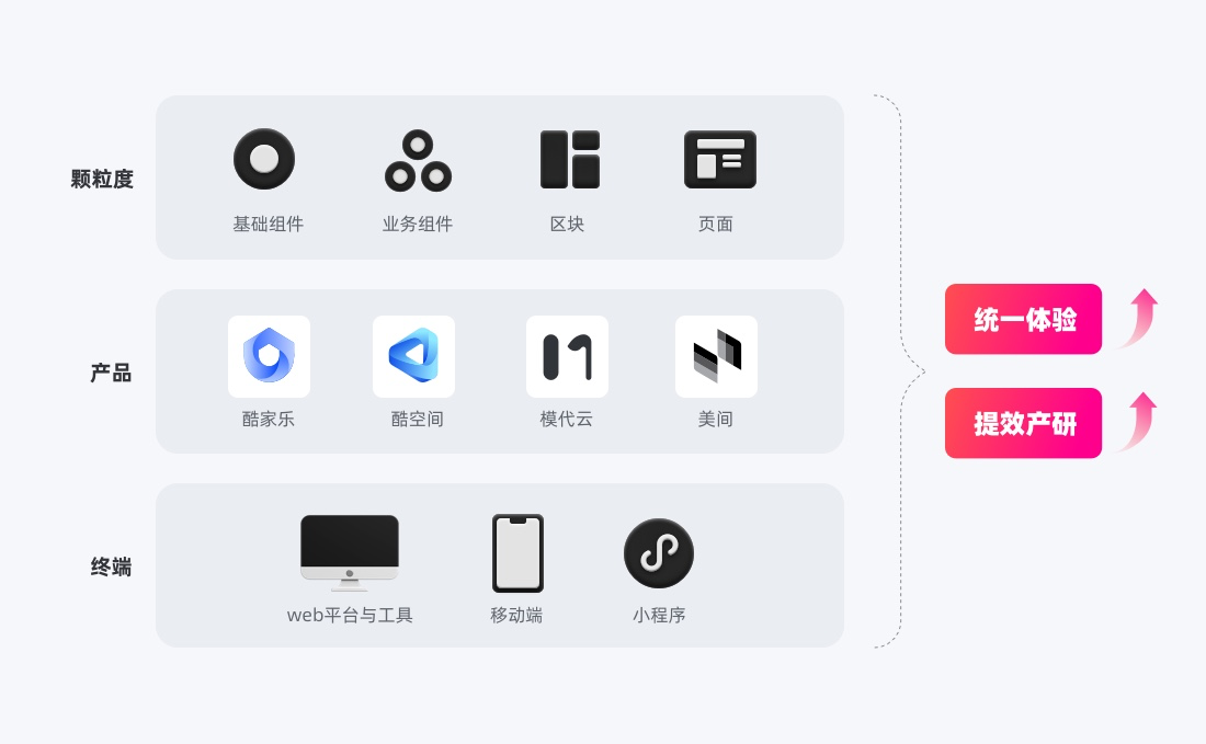 度量層:關(guān)鍵業(yè)務(wù)試點通過以AB對比線上效果、問卷捕捉用戶偏好、設(shè)計走查度量設(shè)計產(chǎn)出合格率;