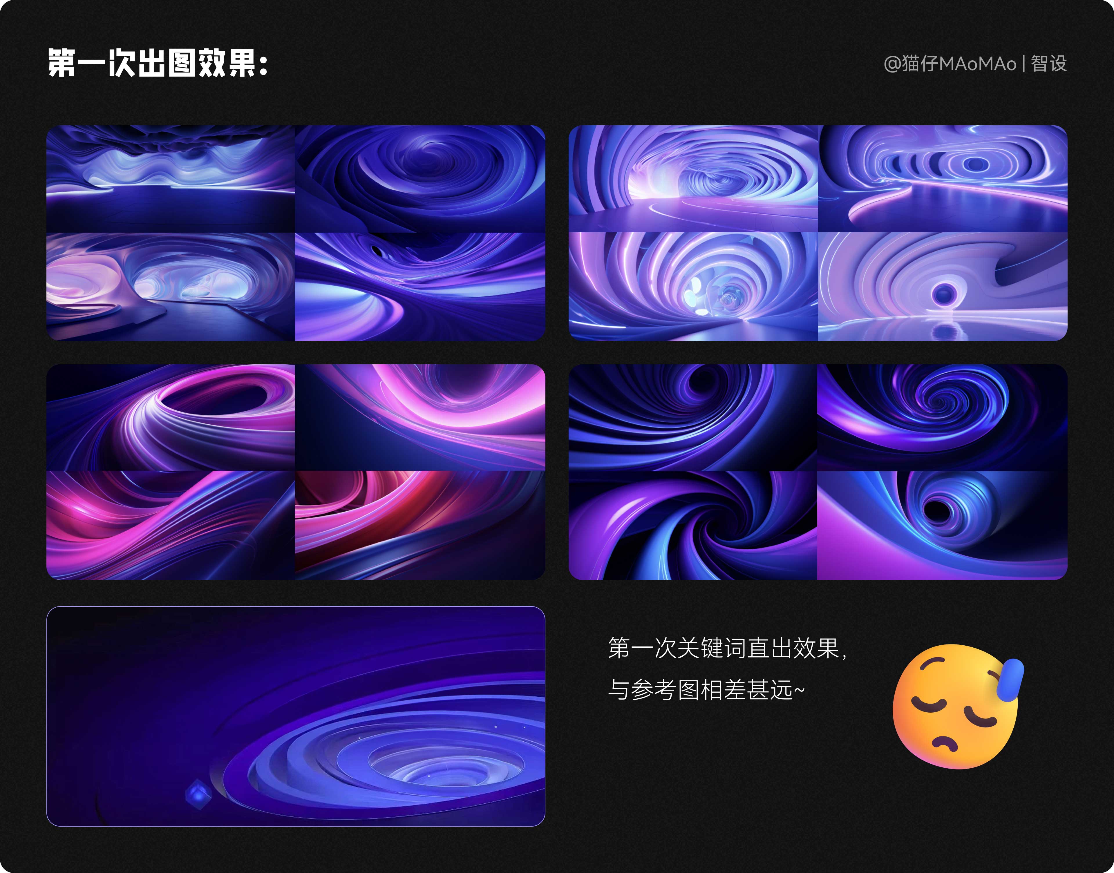 我們看到第一次關(guān)鍵詞直出的效果,并不理想,與我們的參考圖相差甚遠(yuǎn)。