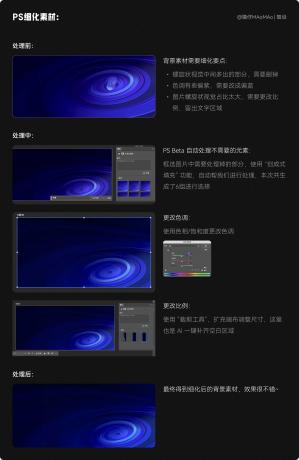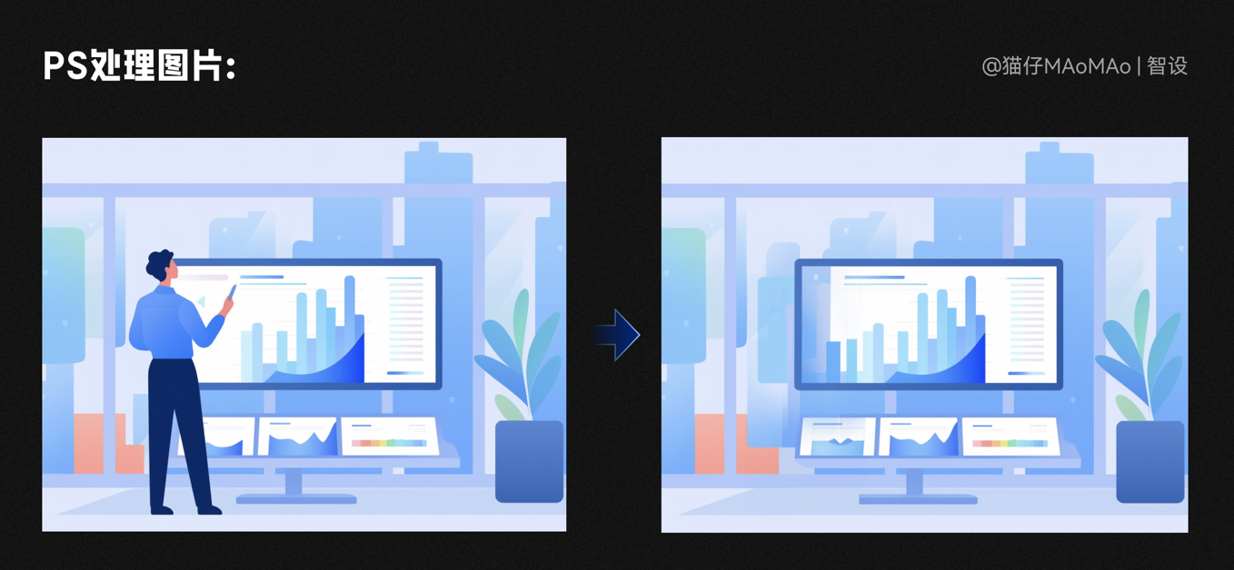 生成的素材我們需要先用 PS 處理一下,背景素材需要處理的地方:主視覺(jué)多余的部分需要?jiǎng)h掉、色調(diào)處理、圖片比例修改。