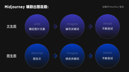 文生圖:顧名思義,需要自己腦暴出關(guān)鍵詞出圖,再通過(guò)修改關(guān)鍵詞,不斷踐行嘗試出圖。圖生圖:在有參考圖的情況下,用 /describe 圖生文命令,讓系統(tǒng)直接生成關(guān)鍵詞,再通過(guò)修改關(guān)鍵詞,不斷進(jìn)行嘗試;我們先使用這種方式生成背景素材。