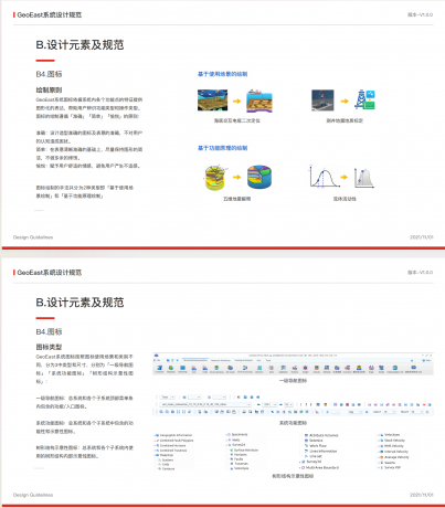 下圖是藍(lán)藍(lán)設(shè)計給中國石油設(shè)計界面和圖標(biāo)后,制定的UI規(guī)范。