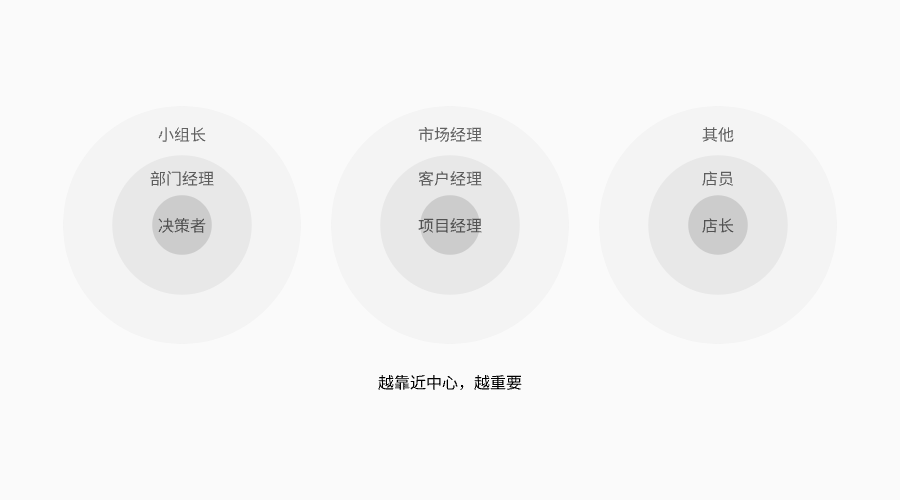 越靠近核心角色,代表重要程度越高,這就意味著,我們做這個需求的時候要根據(jù)重要程度排優(yōu)先級,才能符合需求。
