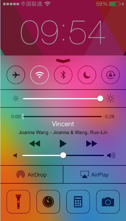 之所以說這是 iOS 7 上最美好的改進(jìn),因?yàn)闊o論在鎖屏狀態(tài)下,抑或在應(yīng)用當(dāng)中,只要指尖從屏幕底部向上滑動,即可調(diào)出 Control Center。