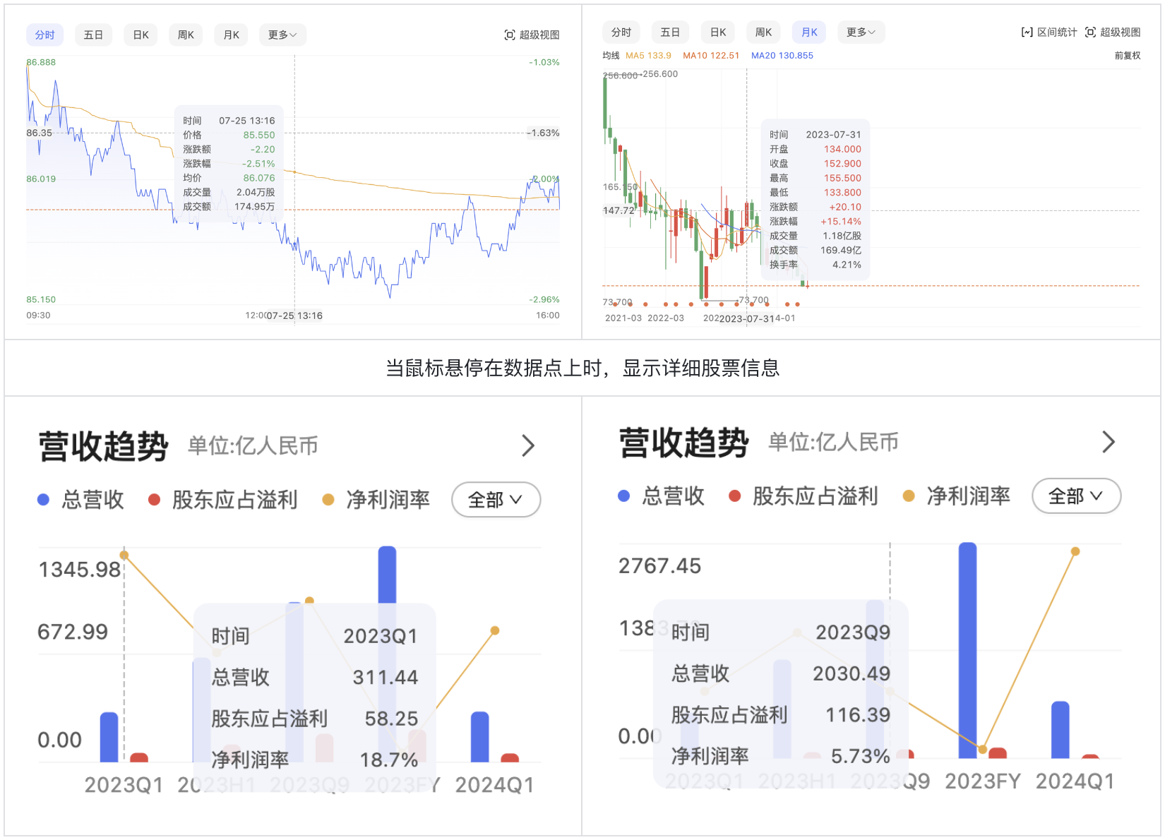為用戶提供工具提示(hover tooltips)是一種行之有效的設(shè)計(jì)策略,在股票界面中尤為重要。當(dāng)用戶將鼠標(biāo)懸停在股票相關(guān)的數(shù)據(jù)點(diǎn)上時(shí),隨即顯示出詳細(xì)的信息,比如具體的股價(jià)數(shù)值、漲跌百分比或者相關(guān)的專業(yè)注釋。