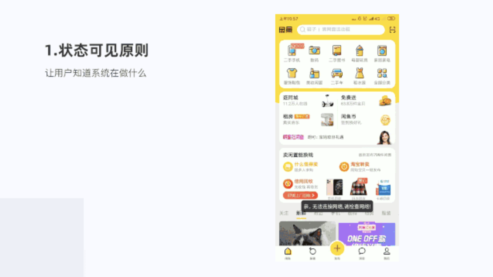 今天我們主要從用戶體驗的部分原則來看閑魚,主要以產(chǎn)品視覺設計四大原則、交互設計十大可用性原則、情感化設計來看閑魚