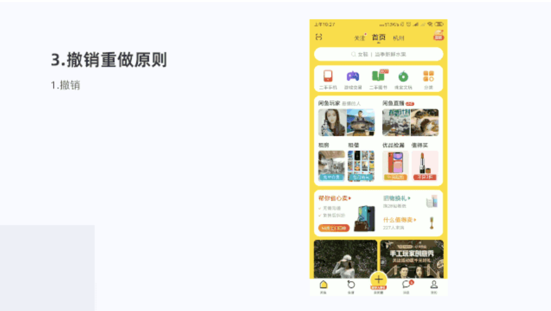 閑魚頁面常見的返回操作就是撤銷的一個例子