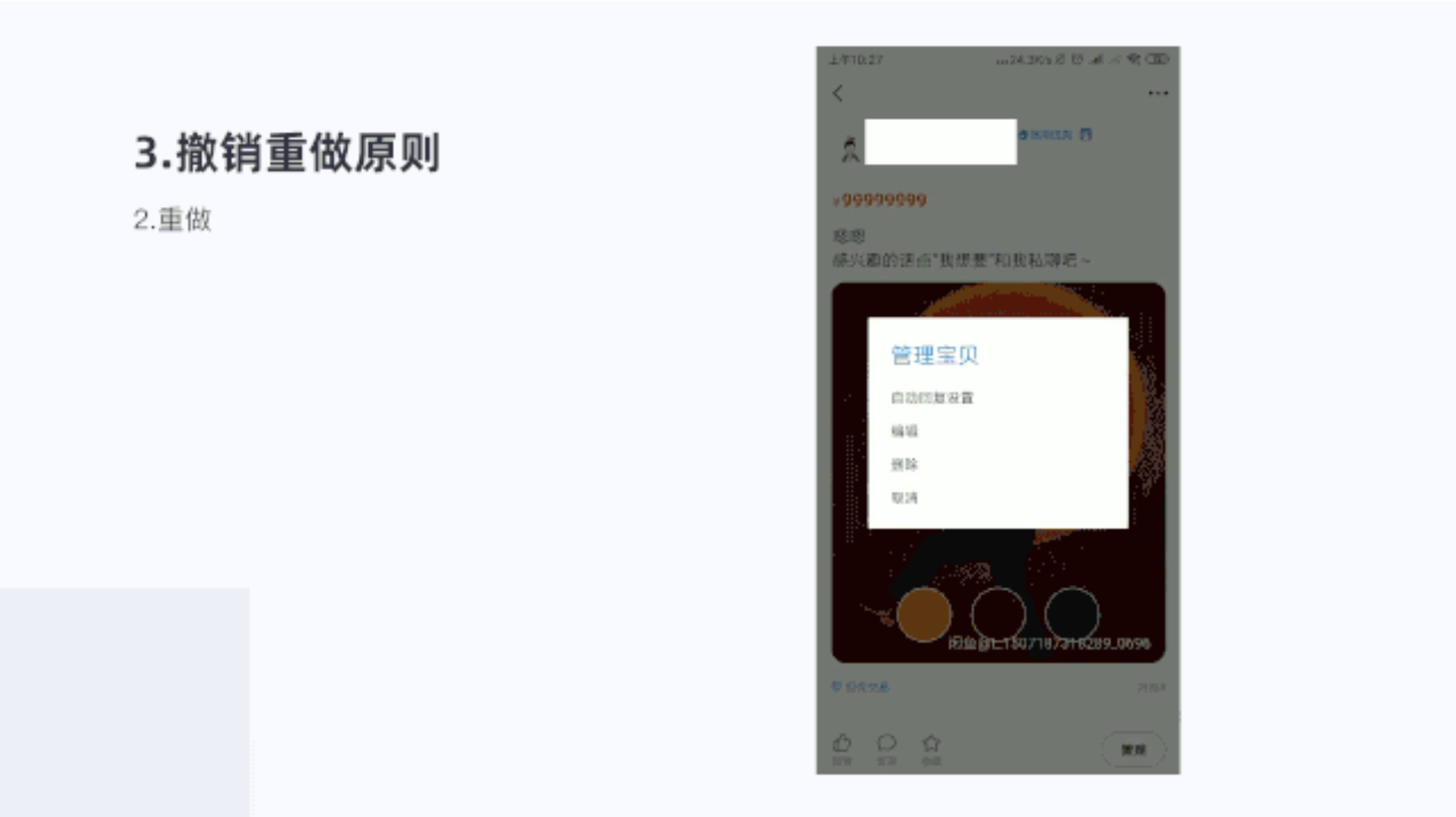就是用戶撤銷上一步,又反悔了要到之前哪一步;或者用戶操作完成發(fā)布又反悔了重新發(fā)布,滿足用戶充足的反悔余地,給予用戶對產(chǎn)品的信心和控制感。