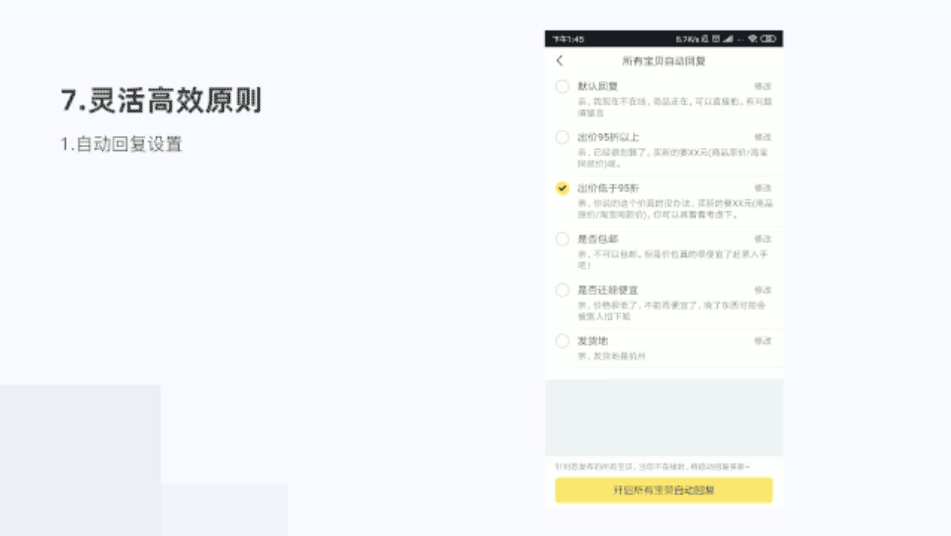 閑魚我的頁面設置自動回復,靈活高效