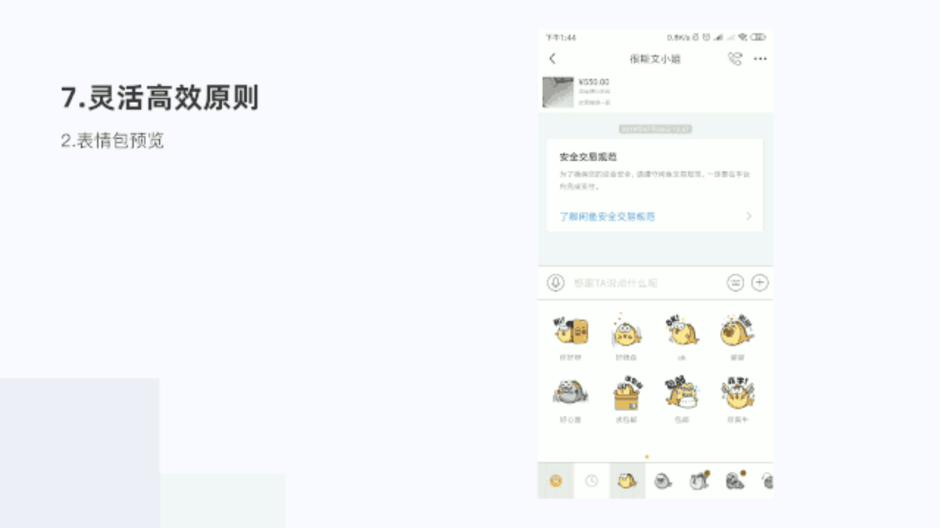 聊天頁面表情包預覽,可愛的閑魚表情切換,滿足用戶操作需求