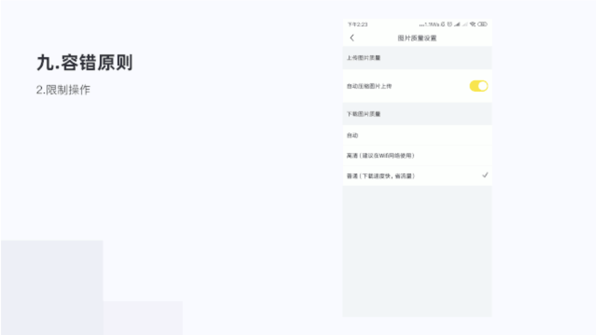 簡單意思防止用戶出錯,在用戶錯誤操作或者可能因為誤操作引起不必要的操作損失時,給以用戶提示,防止用戶出錯。這里主要舉兩個比較常見類型的例子,幫助設計師理解放錯原則。