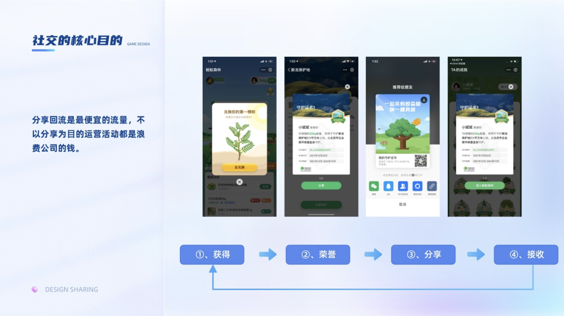指參與過程中取得進步、獲得技能、獲得榮譽,從而獲得成就感,去克服困難達成目標。一般我們會通過證書,勛章,排行榜等去給與用戶成就獎勵。挑戰(zhàn)和技能是促使用戶不斷升級的主要因素,為了讓用戶沉浸其中護住心流,適當?shù)奶魬?zhàn)難度和技能解鎖就顯得尤為重要。挑戰(zhàn)難度高了容易引起用戶的焦慮,難度低了又會讓用戶感覺無聊。比如集卡行動,在考慮總預算不變的情況下,如何設置稀有卡的比例,集卡的難度就尤為重要。支付寶集五福在初期,敬業(yè)福的比例比較低,所以用戶抽到敬業(yè)福的體驗就很開心,但隨著支付寶后面為了擴大社交屬性,提高了集齊率,集五到五福的興奮感就弱了,導致部分用戶失去動力,因為集到的人越多后續(xù)瓜分的錢就越少。