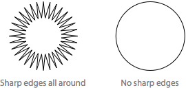 我們之所以對圓角情有獨(dú)鐘,另一個(gè)解釋是,圓角更符合我們在現(xiàn)實(shí)世界中使用日常物品的方式 [3]。圓角隨處可見。作為孩子,我們很快就知道尖角容易傷人,圓角更安全。這就是為什么當(dāng)孩子玩球時(shí),大多數(shù)父母并不感到驚慌。