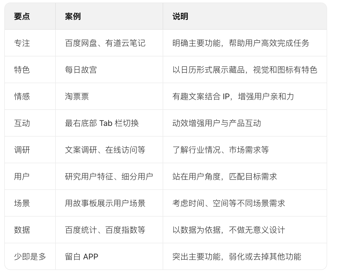 設(shè)計的最終目的是提高生活質(zhì)量,設(shè)計前需思考設(shè)計思維模式(結(jié)構(gòu)化解決以人為本的問題)、設(shè)計理念(以人為本確立主導(dǎo)思想),并進(jìn)行案例分析(如百度網(wǎng)盤專注功能、每日故宮突出特色等 9 點);設(shè)計時要注意簡約(減少認(rèn)知成本)、易用(功能一目了然)、視覺(抓住用戶眼球)等 12 點,涵蓋色彩、規(guī)范、習(xí)慣等方面,這些思考能提升設(shè)計效率與用戶體驗。