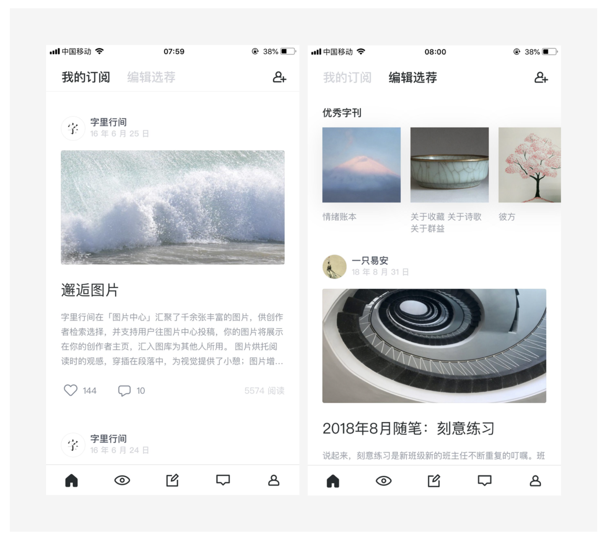 - 簡約:簡潔界面減少用戶錯誤操作和認(rèn)知成本,如字里行間 APP 設(shè)計簡潔,結(jié)構(gòu)清晰。