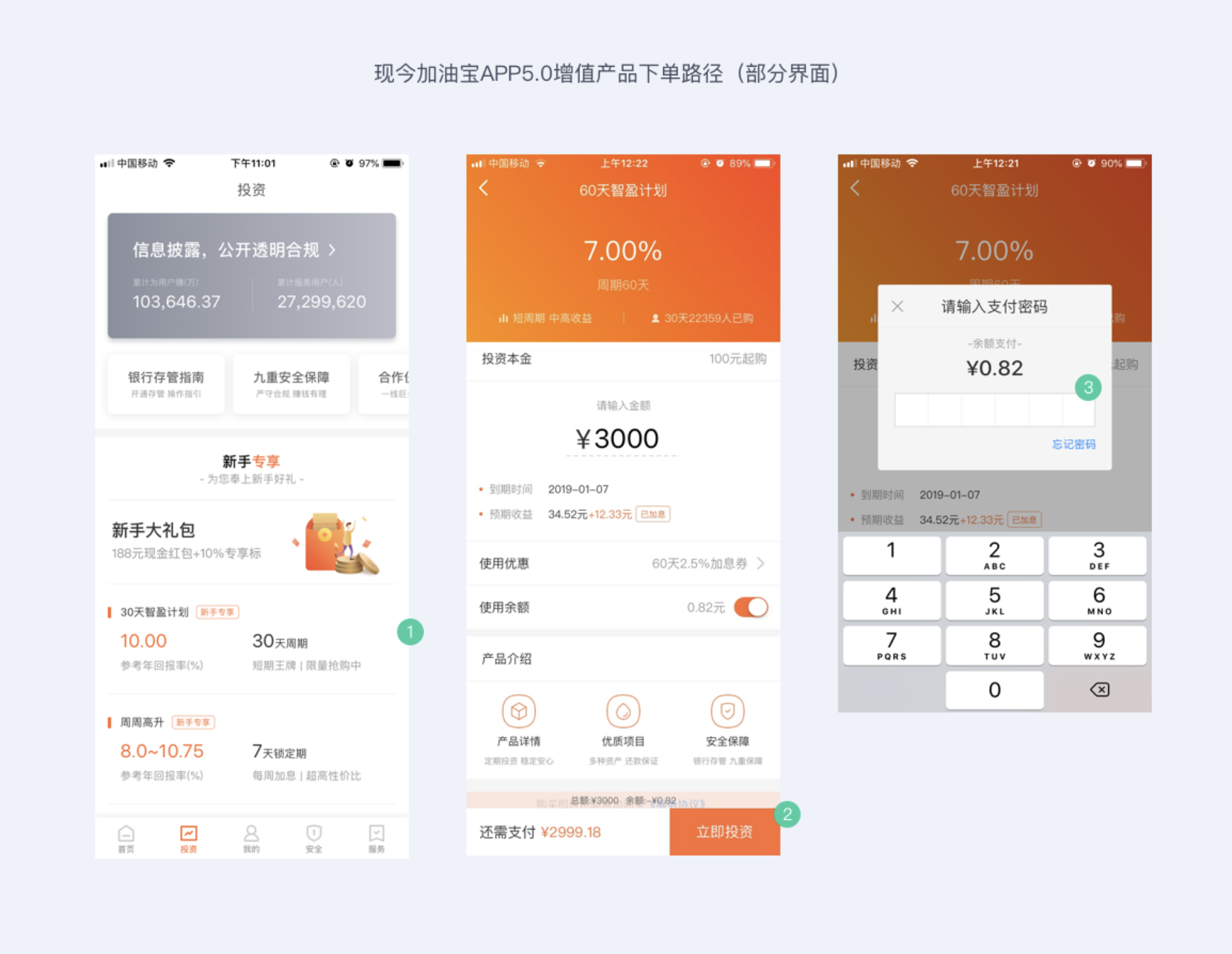 - 提升支付確認(rèn)率:在數(shù)字鍵盤旁強(qiáng)調(diào)「安全加密」,重復(fù)平臺(tái)歷史兌付率 100%、銀行存管等安全保障。