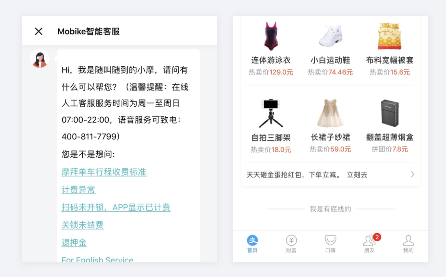 - 明確服務(wù)者定位的設(shè)計:站在服務(wù)者角度,以親近方式與用戶溝通,讓用戶感受產(chǎn)品溫度,如摩拜單車 APP 在線客服用 “您” 稱呼用戶,支付寶 APP 用 “我是有底線的” 幽默文案拉近關(guān)系。