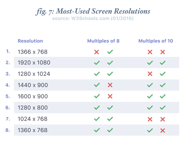 - 多平臺(tái)設(shè)計(jì):不管外形如何,最流行的屏幕尺寸至少在一個(gè)軸上可以被 8 整除,通常是兩個(gè)軸。此外,一些平臺(tái)的樣式指南(如 Material Design)特別要求使用 4 或 8 點(diǎn)的網(wǎng)格,這使得該系統(tǒng)非常適用。
