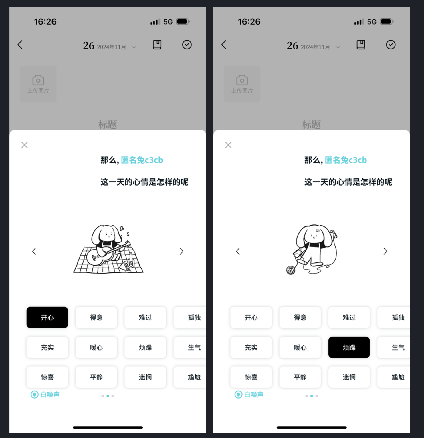 記日記時選 “心情標簽”,是很多人記錄生活的習慣,但常規(guī)設(shè)計要么是單調(diào)的文字(“開心”“難過”),要么是簡單的表情符號,總少點代入感。
