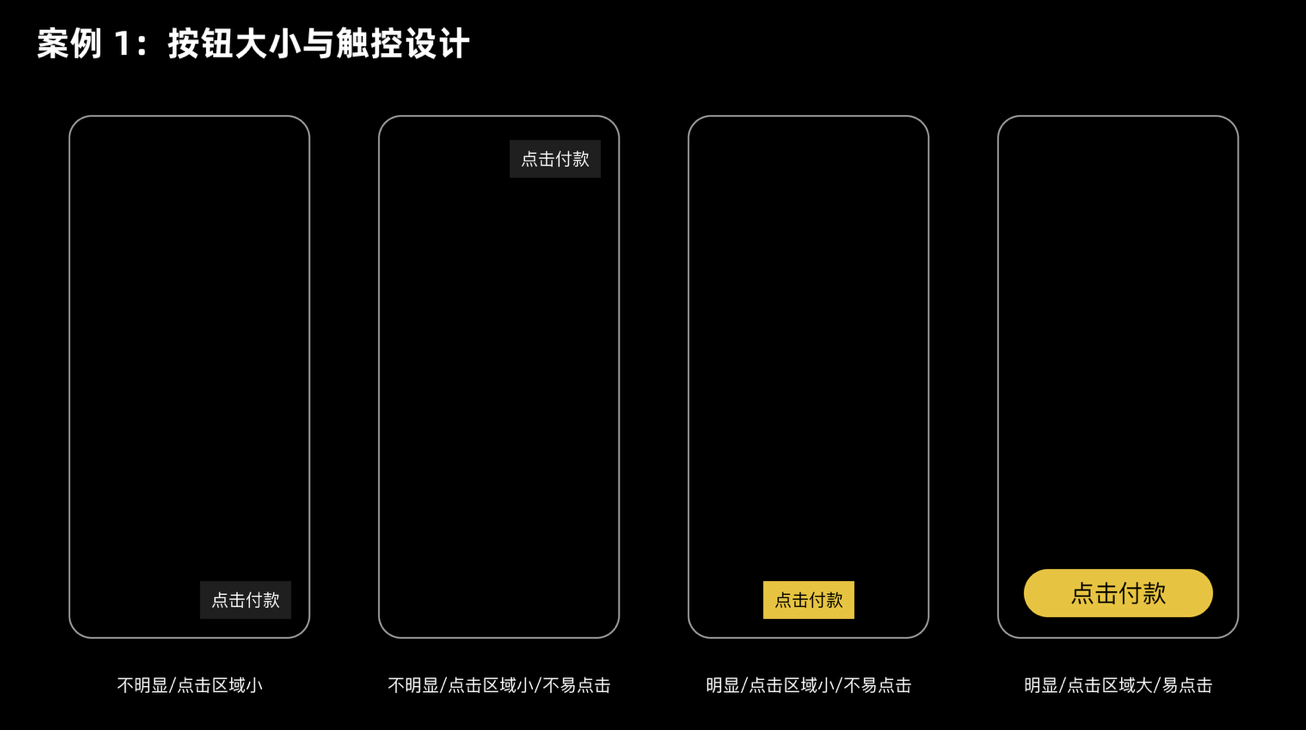 比如支付頁面的 “確認付款” 按鈕,幾乎所有 APP 都會把它設計成頁面中最大、最醒目的元素,不僅尺寸足夠,還會放在拇指容易觸及的區(qū)域(如手機下半屏)。這樣一來,用戶無需猶豫就能快速點擊,既減少誤操作風險,也間接提升了支付轉化率。