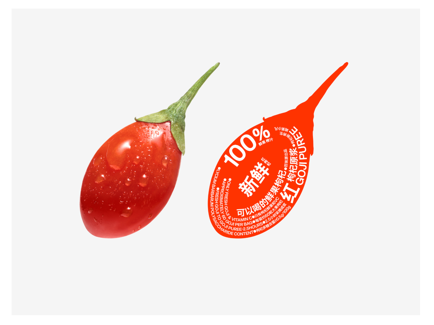 包裝的視覺中心是一顆巨大、飽滿的枸杞圖形,沒有多余裝飾,直接將消費(fèi)者的注意力鎖定在原材料上。圖形還原了枸杞新鮮、圓潤、多汁的形態(tài),甚至通過微妙的明暗對(duì)比呈現(xiàn)果實(shí)的質(zhì)感,無需過多文字,便直觀傳遞出 “原料優(yōu)質(zhì)” 的核心信息。這種 “單一核心圖形” 的設(shè)計(jì),避免了多元素競(jìng)爭(zhēng)視覺焦點(diǎn),讓產(chǎn)品記憶點(diǎn)更鮮明。