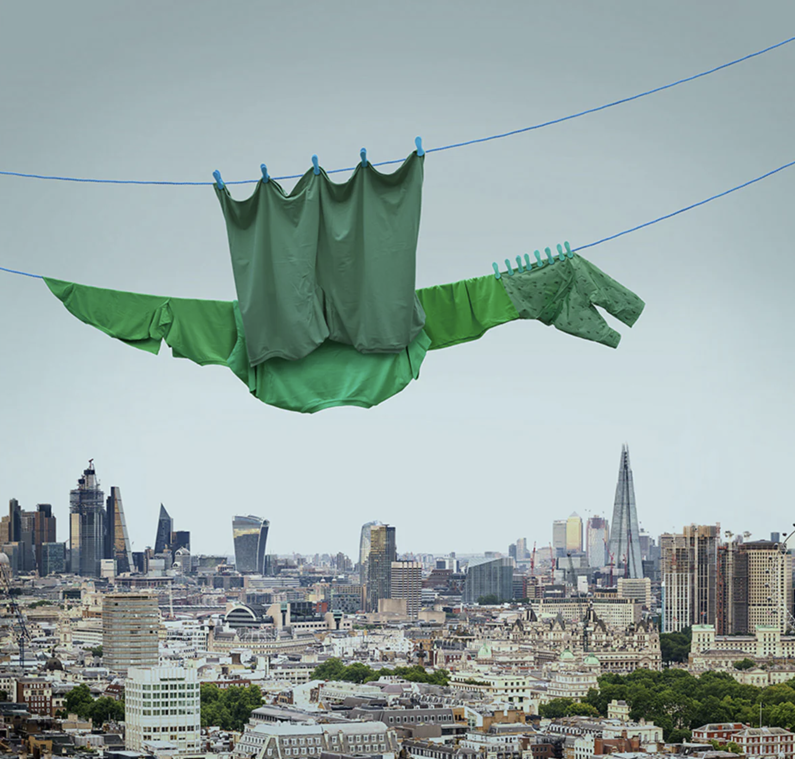 Helga 的創(chuàng)作從不局限于單一形式,而是跨越了插圖、攝影、視頻和定格動畫等多種媒介。她會先通過巧妙折疊、擺放,賦予衣物獨特的形態(tài) —— 可能是一只蜷縮的小貓,或是一個翩翩起舞的小人,再用攝影定格瞬間的靈動,或通過定格動畫讓這些 “衣物角色” 動起來,演繹出簡單又有趣的故事。