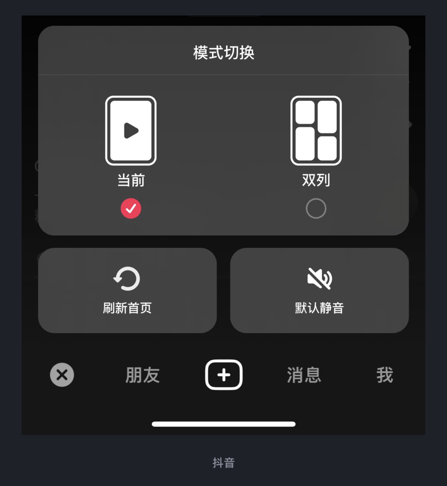 手勢交互的核心是 “用最自然的動作實現(xiàn)最常用的功能”,而雙觸發(fā)手勢則讓單一入口承載更多可能性。抖音的底部 “首頁” 標簽欄就藏著這樣的巧思:單擊即可快速刷新內(nèi)容,長按則彈出功能面板,支持單列 / 雙列布局切換、默認靜音設(shè)置等操作。