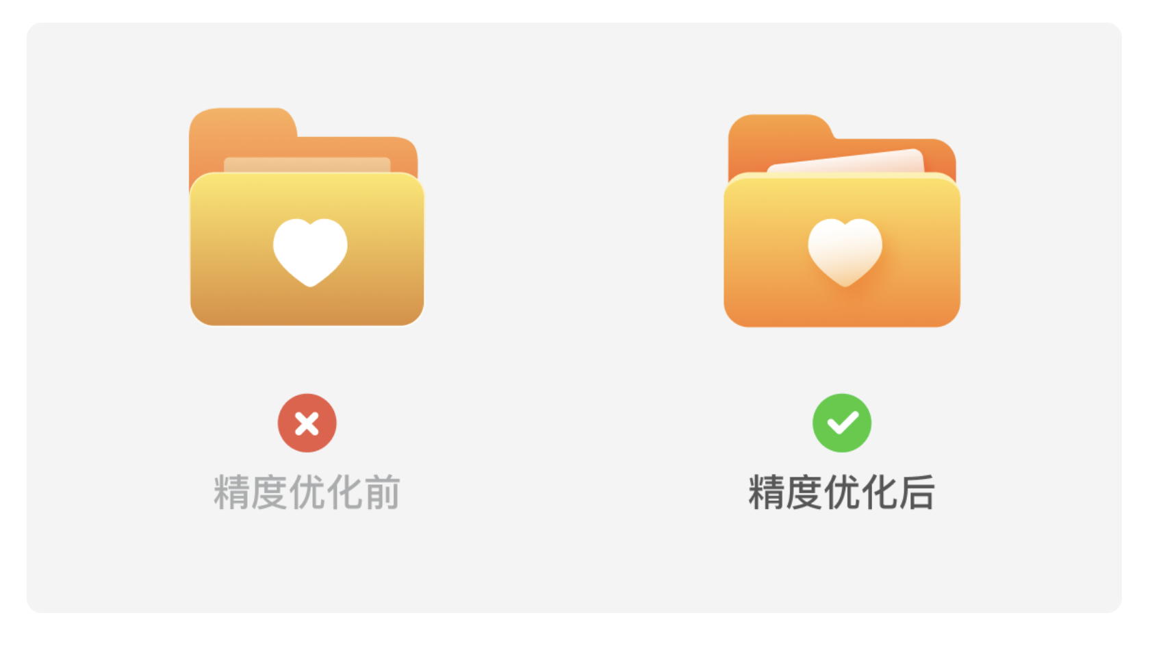 很多設計師認為圖標只要造型準確就夠了,但恰恰是這些 “不起眼” 的小元素,最能暴露設計功底。以常見的文件夾圖標為例,從 “能用” 到 “精致”,只需要 4 個關鍵調整: