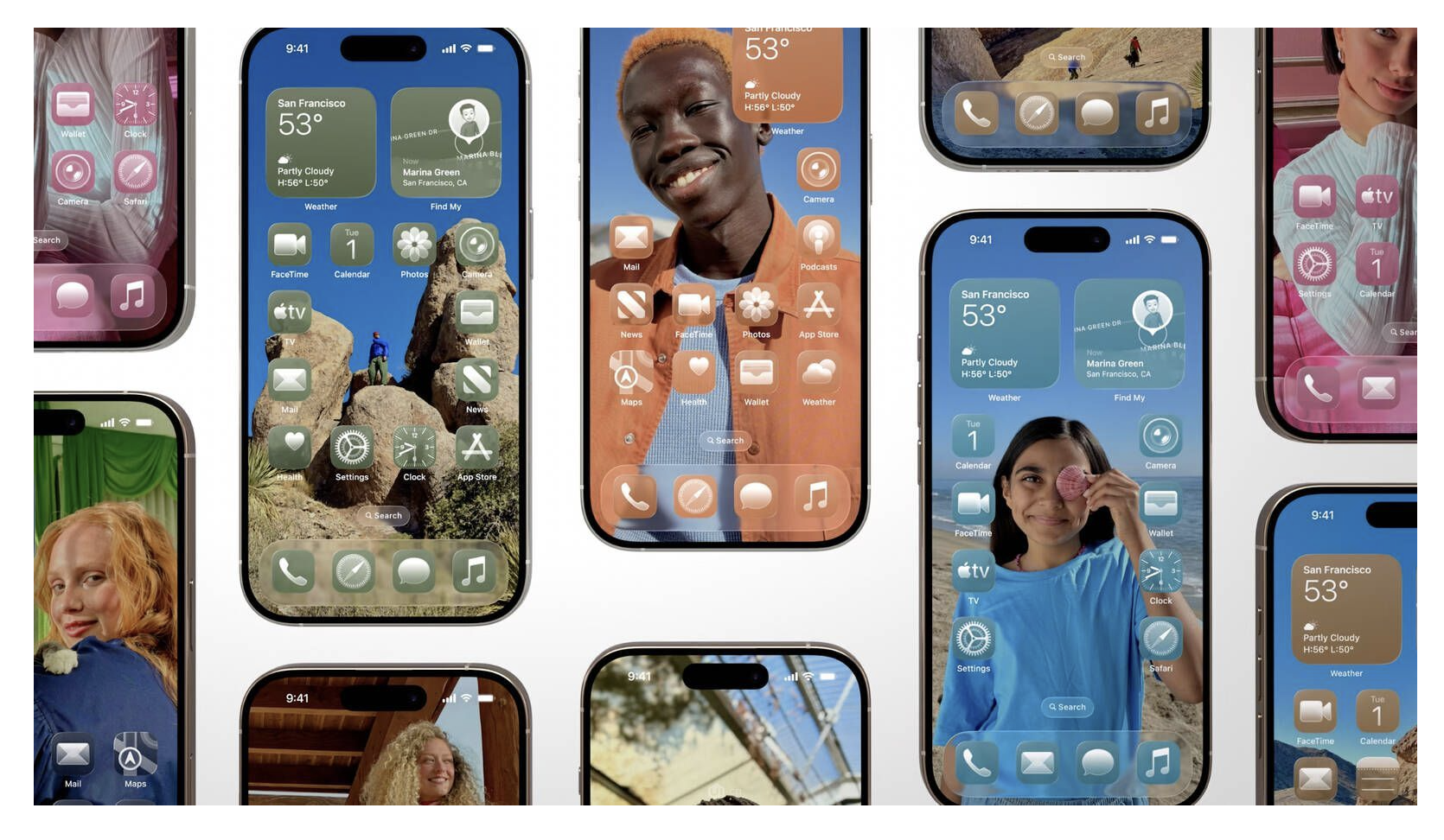 細(xì)節(jié)方面,動態(tài)島、通知中心、長按手勢和應(yīng)用程序庫保留原有實用功能,僅在視覺上融入玻璃美學(xué) —— 應(yīng)用程序庫文件夾半透明化,搜索欄改為圓形設(shè)計;時鐘支持自適應(yīng)調(diào)整大小,搭配照片壁紙時可自動擴(kuò)展填充空間,甚至能與圖像獨(dú)特重疊,打破傳統(tǒng)時鐘的顯示局限。
