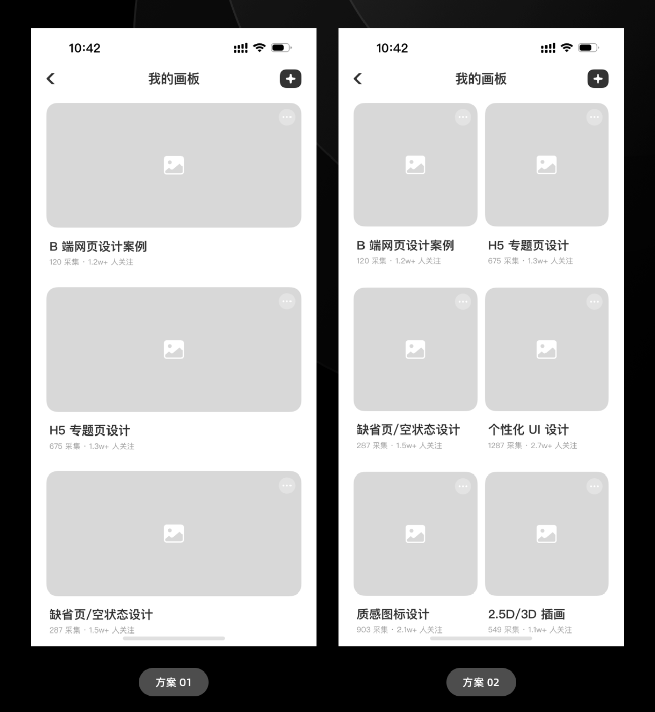 - 方案 02:左側(cè)展示發(fā)布者頭像與昵稱,右側(cè)展示動態(tài)內(nèi)容,強化用戶之間的關(guān)聯(lián)感