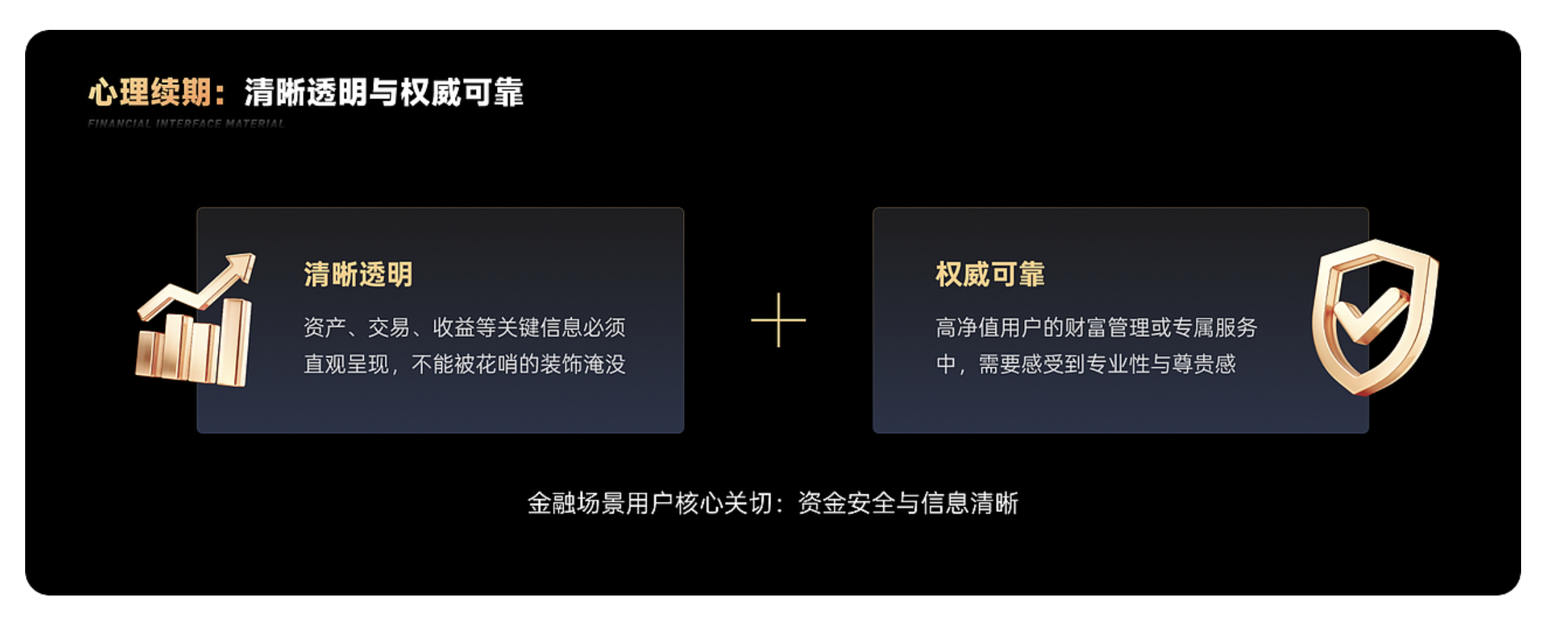 金融產(chǎn)品承載著用戶的財富與隱私,其界面設(shè)計的底色永遠是 “穩(wěn)重克制”。過于花哨的色彩、輕浮的質(zhì)感會直接削弱用戶對平臺可靠性的判斷,而材質(zhì)的選擇正是這種基調(diào)的具象化表達。相較于其他行業(yè)追求的娛樂性與視覺沖擊,金融界面的材質(zhì)更需要傳遞 “歷經(jīng)考驗” 的厚重感,讓用戶在每一次交互中都能感受到 “財富有托” 的安心。