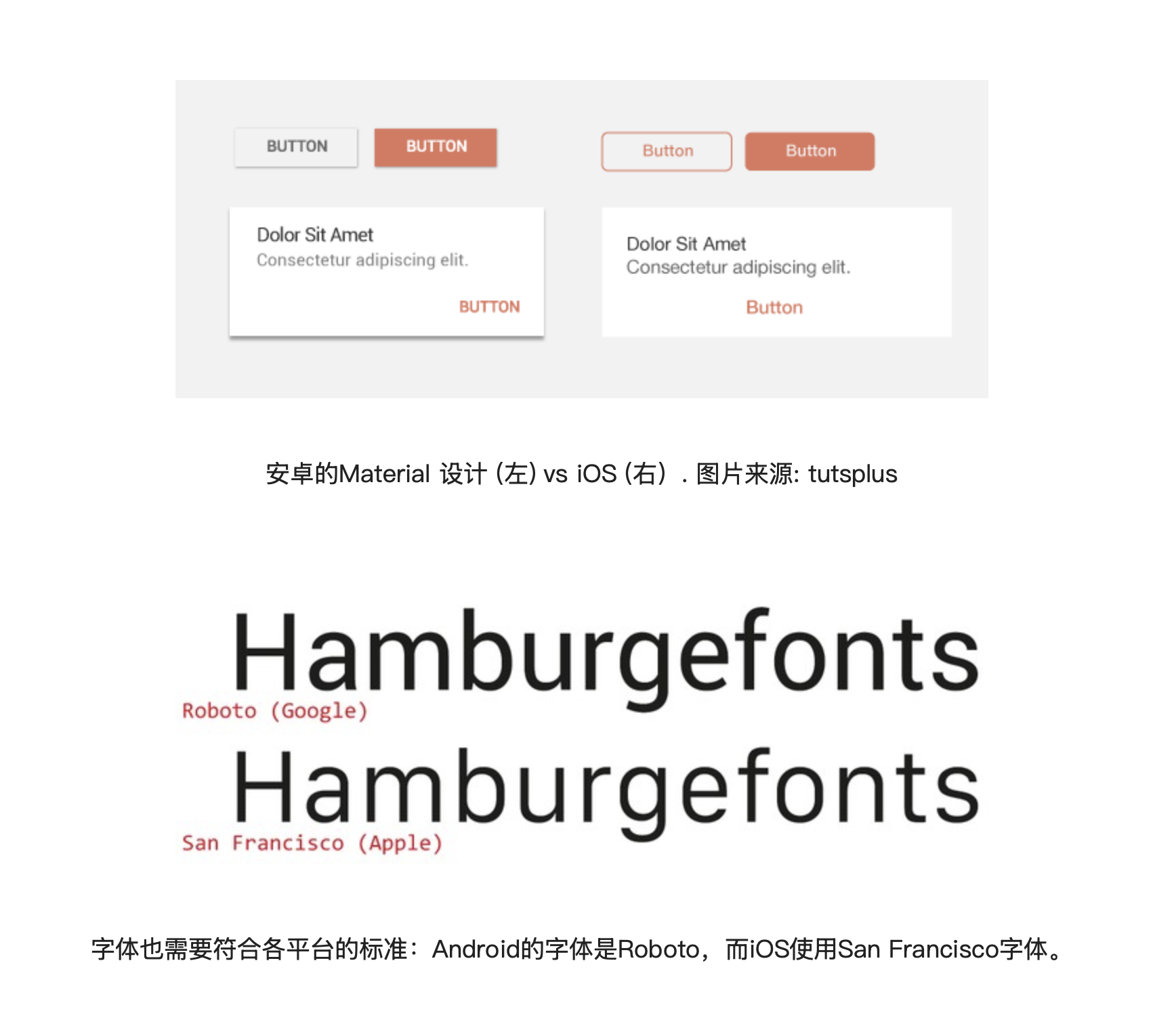 字體選擇同樣需要遵循平臺標準:Android 系統(tǒng)默認字體為 Roboto,iOS 則使用 San Francisco 字體。這兩種字體在字重、間距、適配性上均經(jīng)過平臺優(yōu)化,若隨意替換為其他平臺的字體,不僅會打破系統(tǒng)統(tǒng)一性,還可能影響用戶對 App 的信任感。如果需要自定義頁面元素,應(yīng)基于自身品牌調(diào)性設(shè)計,而非模仿其他平臺的風格。