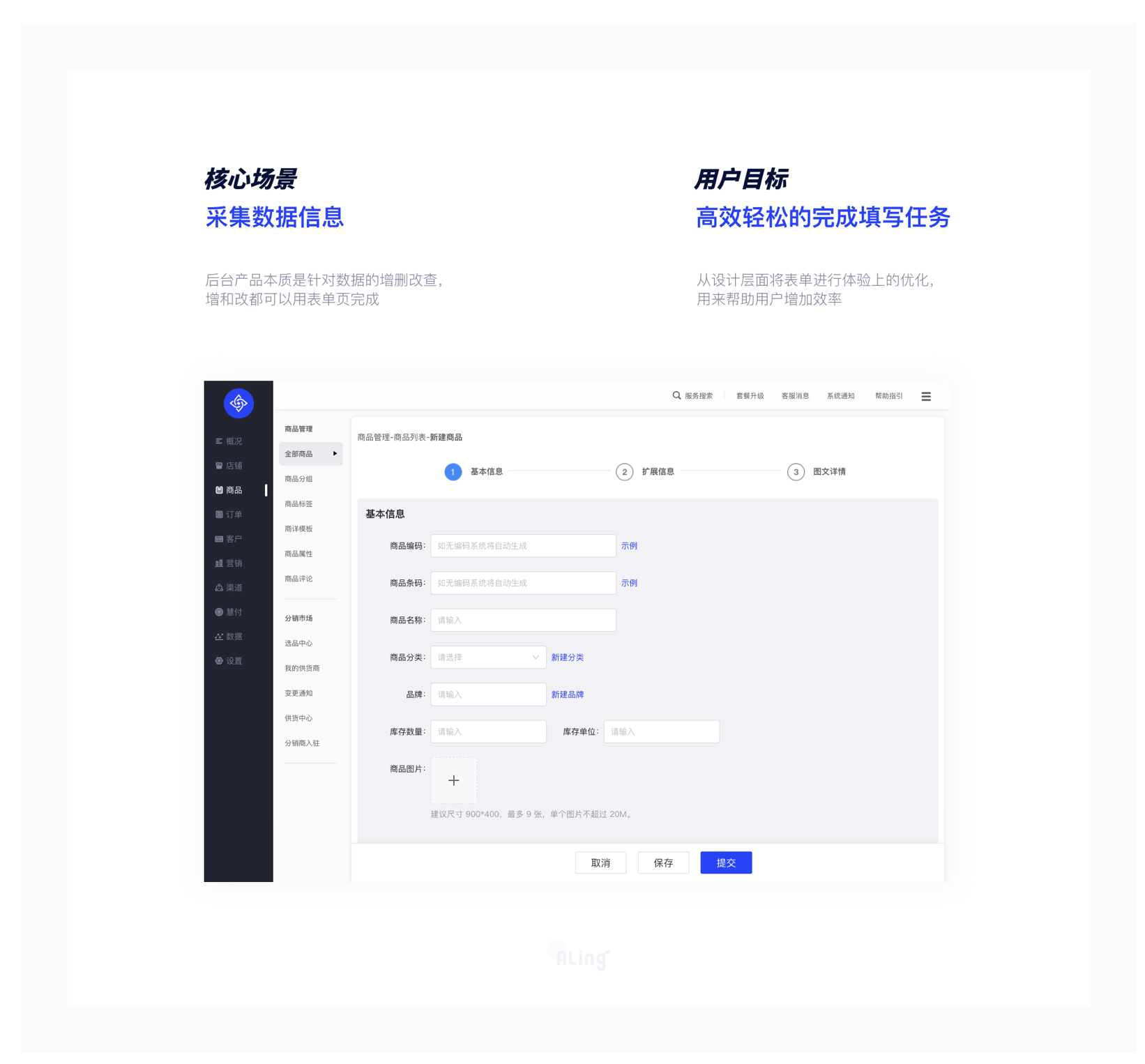 適用于超出彈窗 / 抽屜承載量的場景,如初始化入駐、一級模塊設(shè)置等,需提交大量信息或涉及多步驟審核。跳轉(zhuǎn)頁面需保持路徑清晰,提供 “返回” 按鈕,避免用戶迷失。