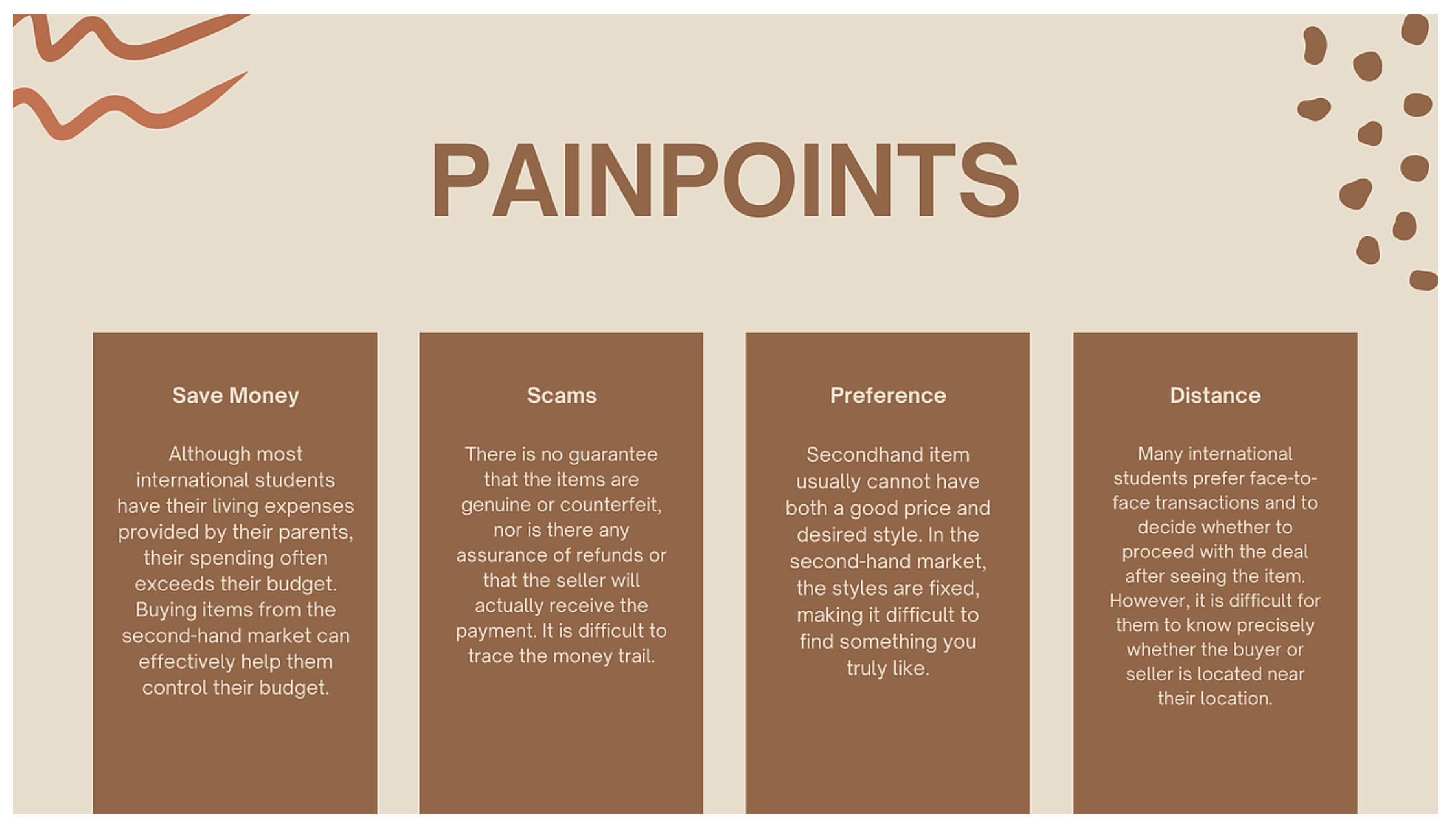 - 深入挖掘留學(xué)生在二手商品買賣過程中面臨的核心痛點,明確其在交易安全、價格評估、溝通效率、物流適配等方面的具體需求;