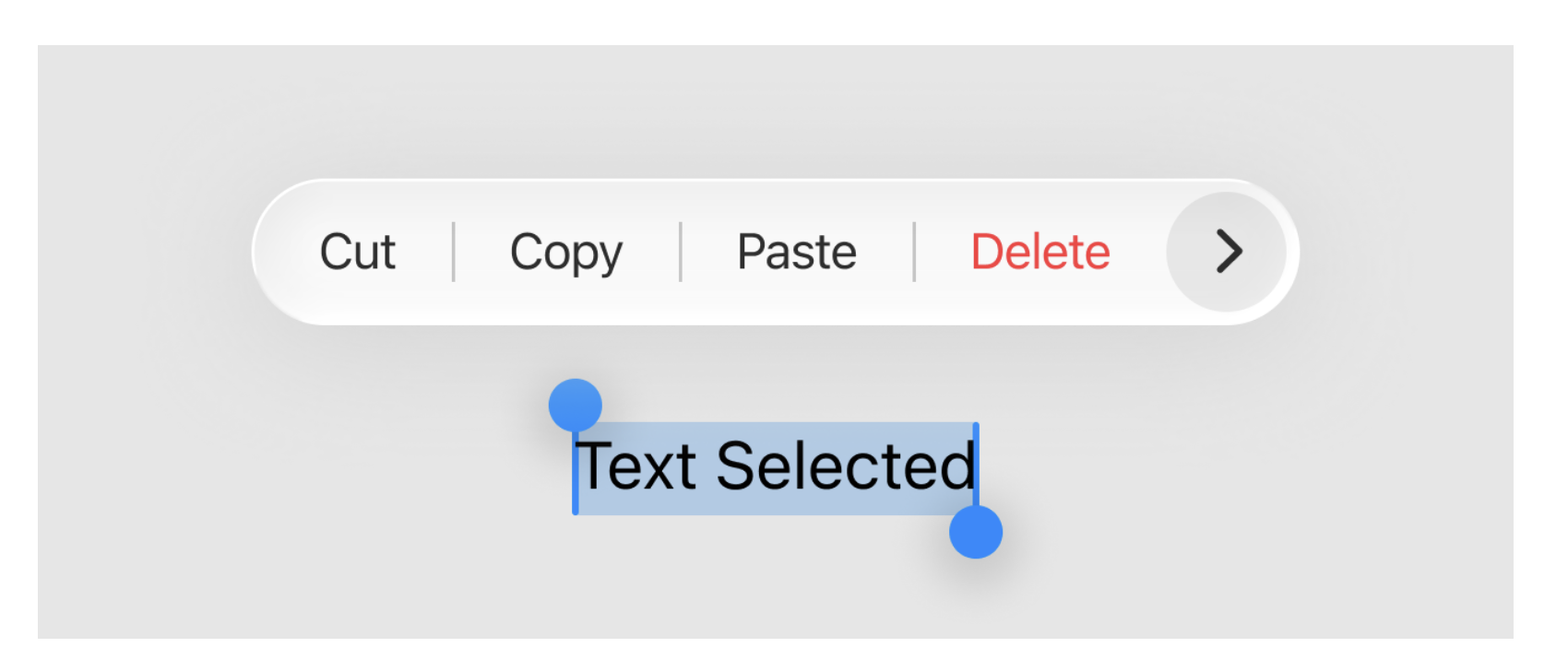 菜單的特殊細(xì)分類型,聚焦文本、圖片等內(nèi)容的編輯操作,包含剪切、復(fù)制、粘貼、全選、翻譯等固定命令。iOS 會自動根據(jù)選中數(shù)據(jù)類型匹配相關(guān)操作(如選中地址時(shí)新增 “獲取路線”),無需額外自定義。iOS26 中取消了指向內(nèi)容的小箭頭,邊框改為全圓角設(shè)計(jì),視覺更簡潔。