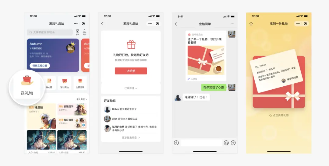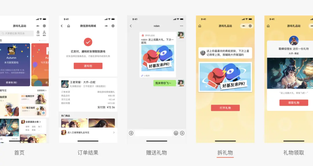 第二個案例,來自微信游戲禮品站的設計。游戲禮品站是支持玩家間互贈游戲道具、周邊的小程序,在設計過程中,產(chǎn)品經(jīng)理常提出一個核心需求:“這個頁面能不能更有氛圍感?”