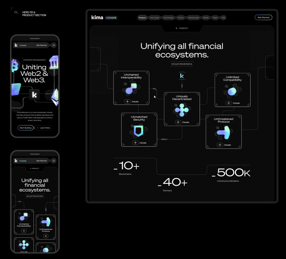 Kima Network 的設(shè)計(jì)完美詮釋了科技類產(chǎn)品的設(shè)計(jì)核心:用視覺語言傳遞專業(yè)感,用信息架構(gòu)降低理解成本,用品牌符號建立用戶認(rèn)知。