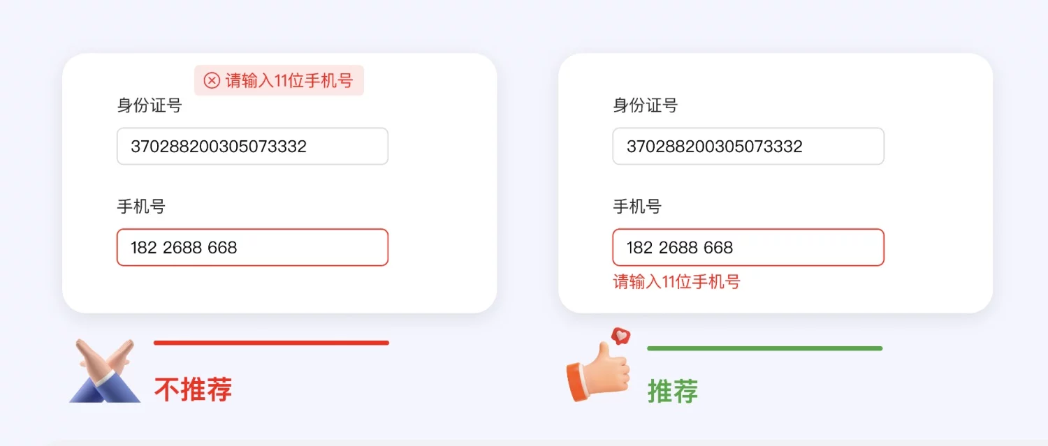 - 錯(cuò)誤提示就近展示,明確錯(cuò)誤原因 + 修改建議