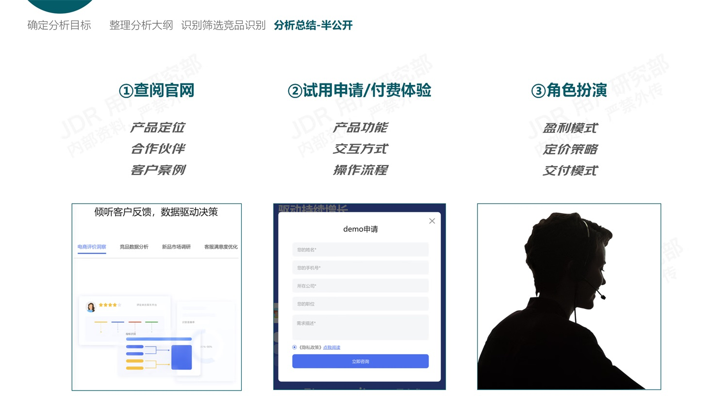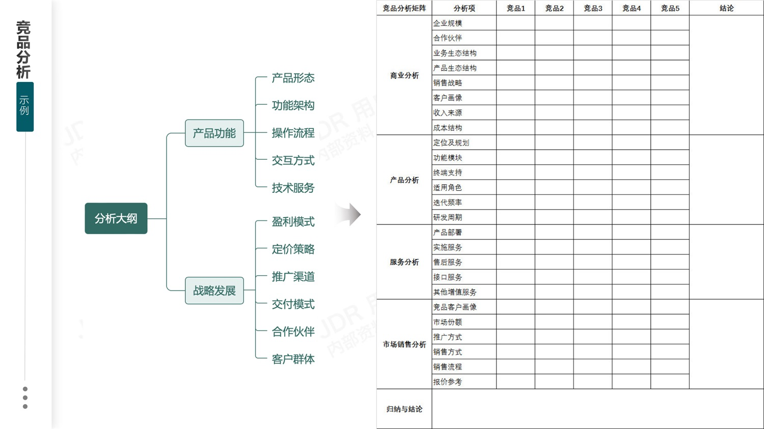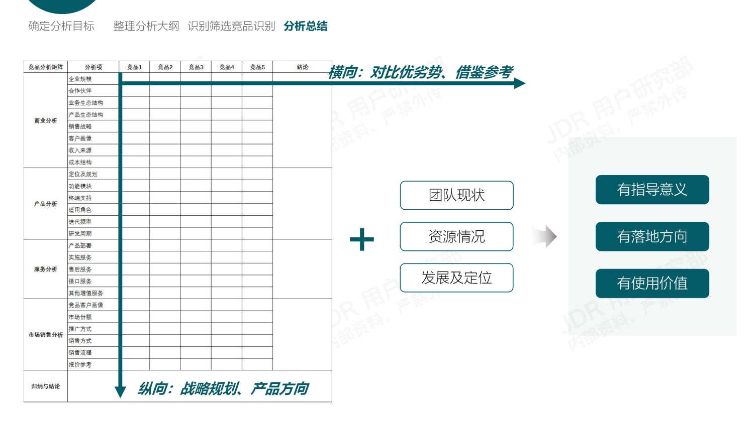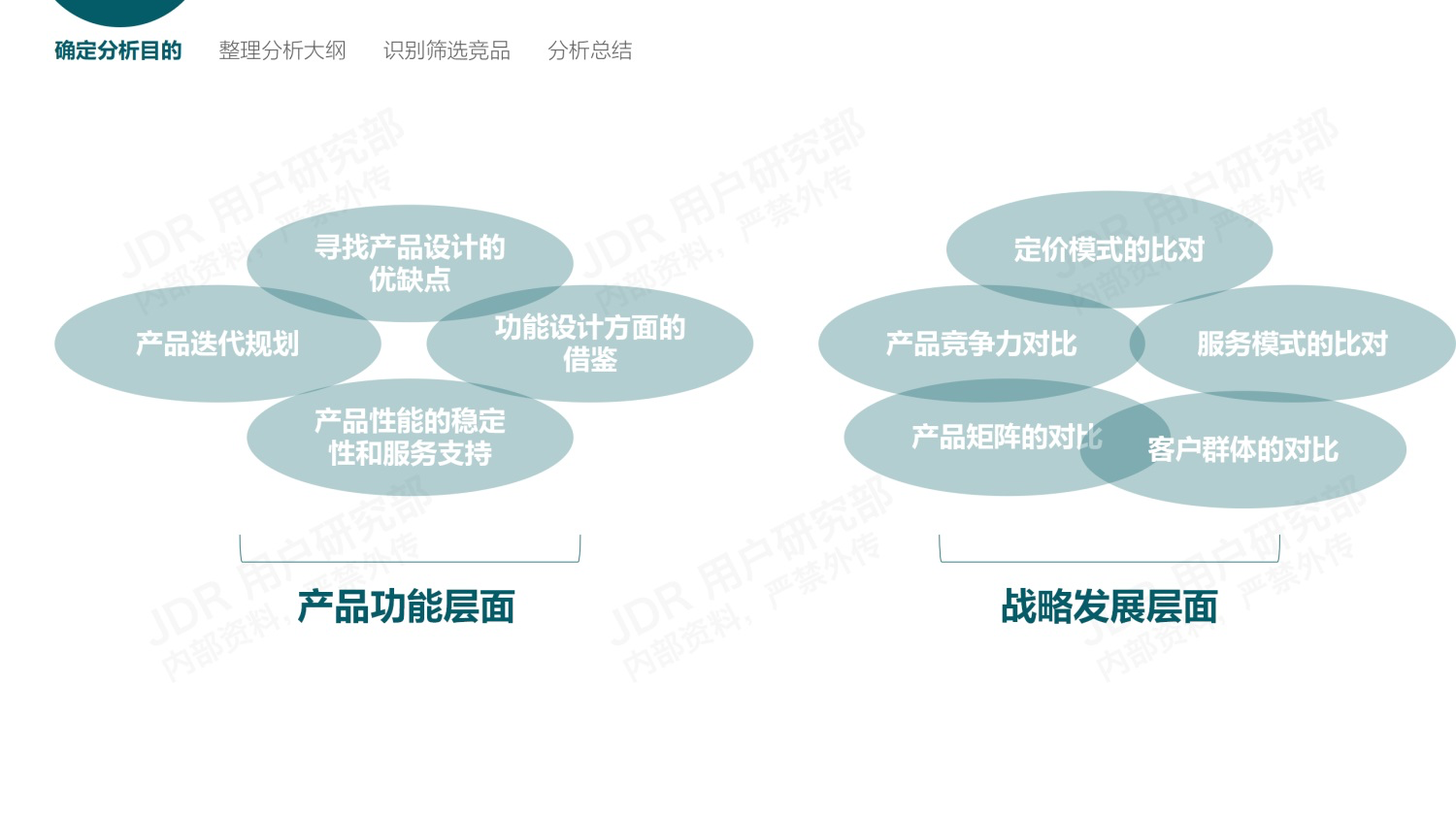 - 戰(zhàn)略層:對比市場定位、定價、客戶群、產(chǎn)品矩陣、服務(wù)模式