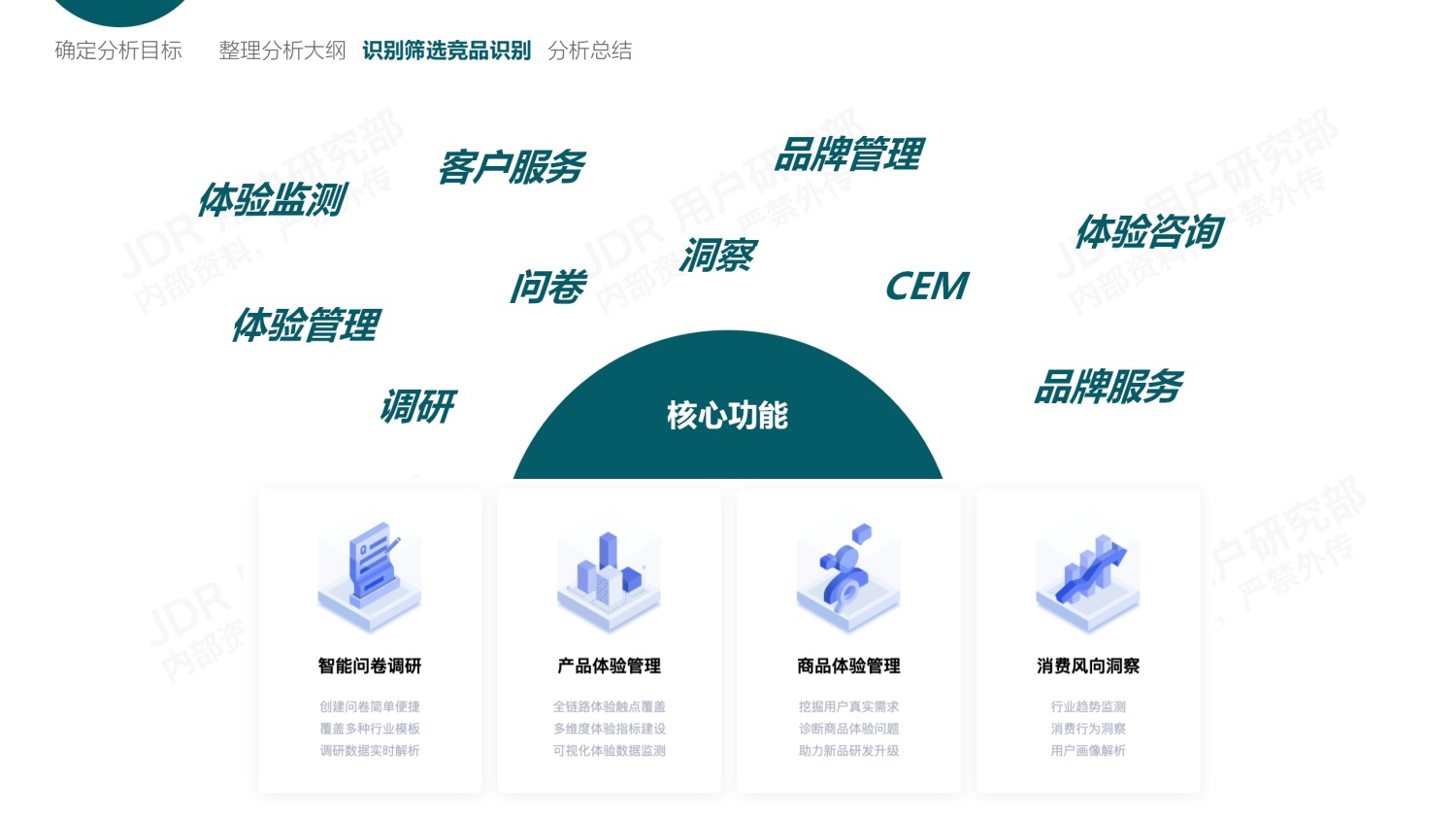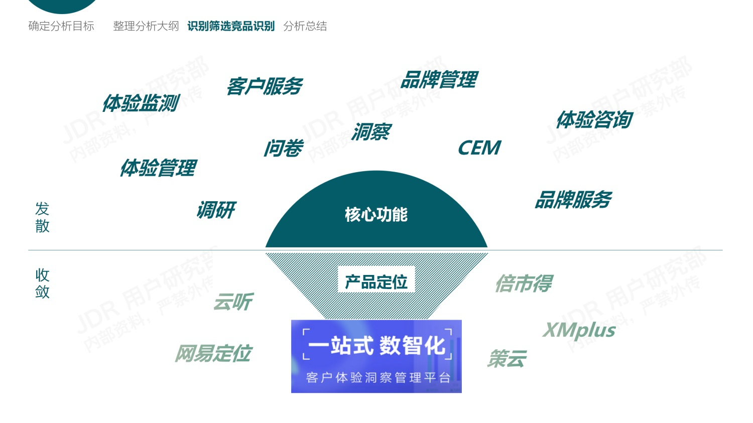 - 發(fā)散:提煉核心關(guān)鍵詞(如體驗管理→CEM、體驗監(jiān)測、客戶洞察、數(shù)據(jù)采集)